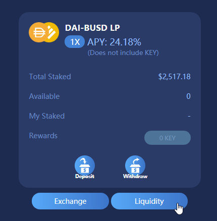 在此示例中,我们将使用 DAI/BUSD 池。 点击流动性,然后点击"增加流动性"。您将收到一个新的屏幕,现在你需要再次批准这个DAI和BUSD。